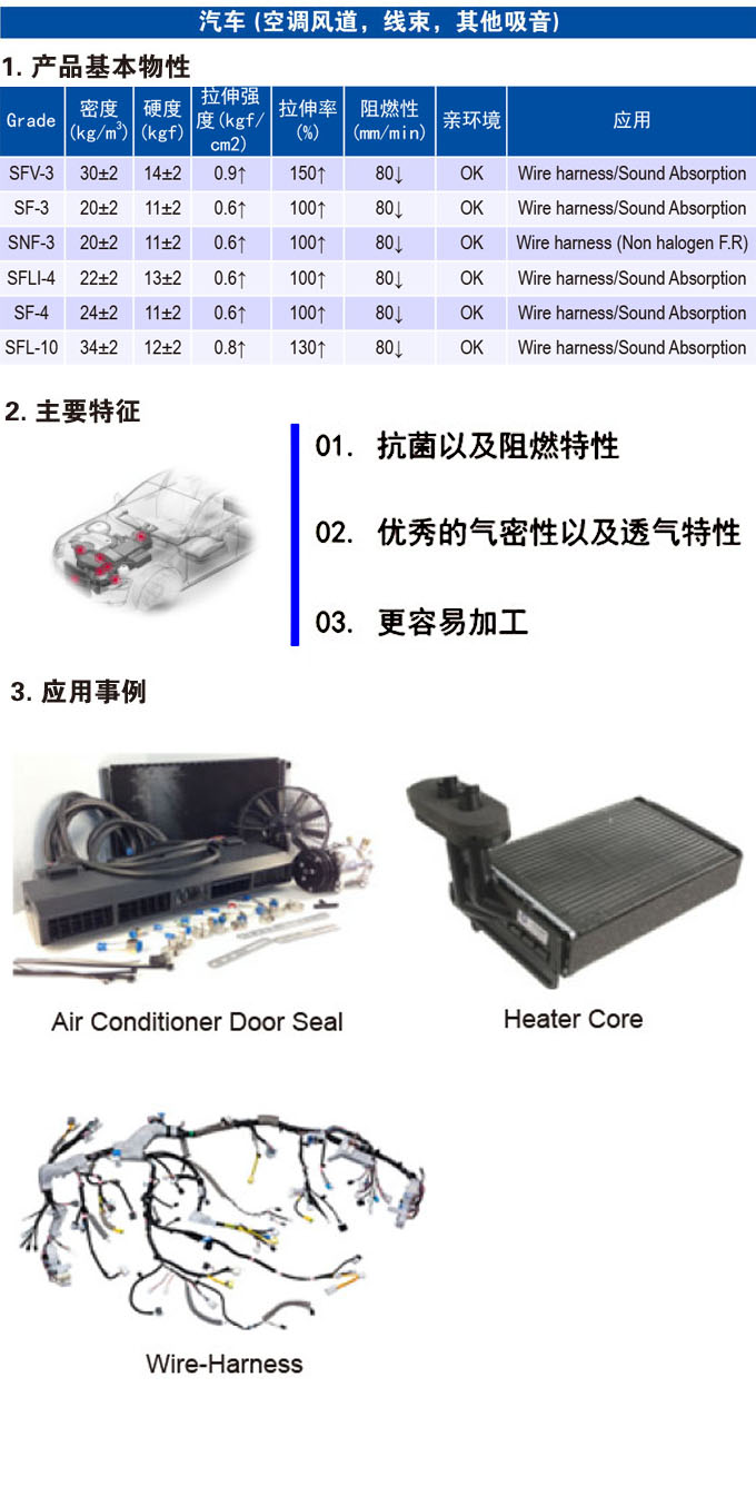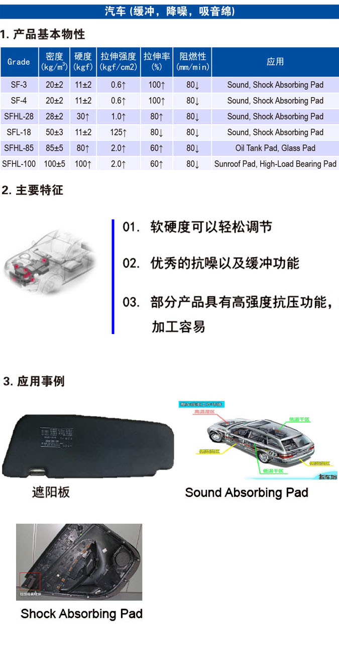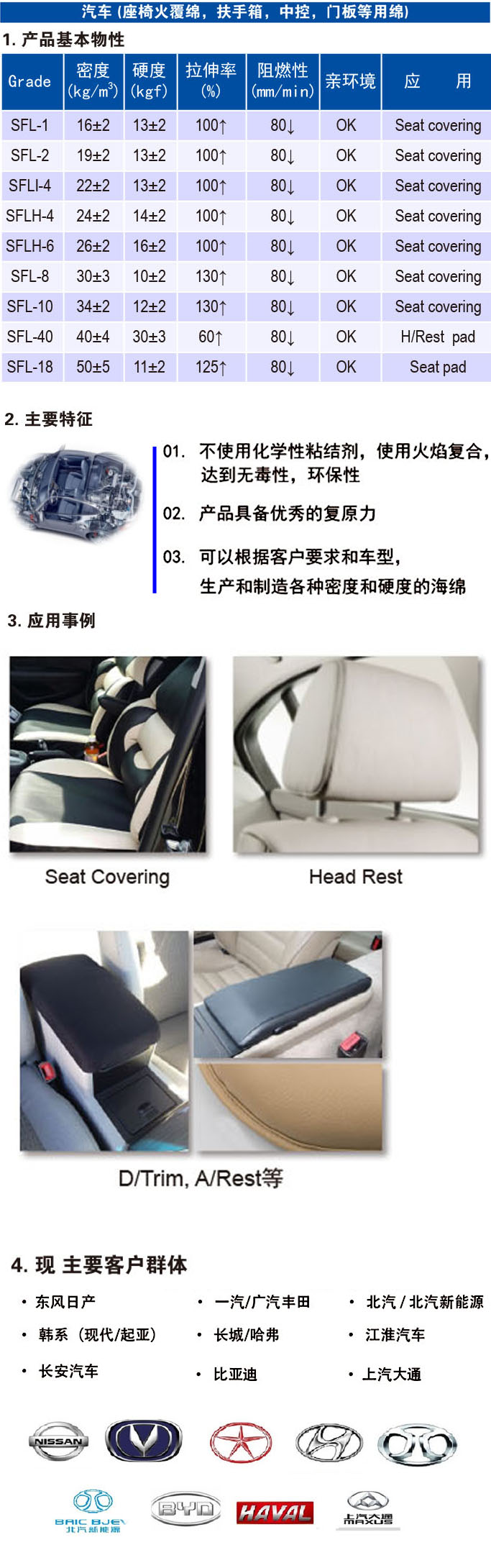 『座椅火覆绵,扶手箱,中控,门板等用绵』